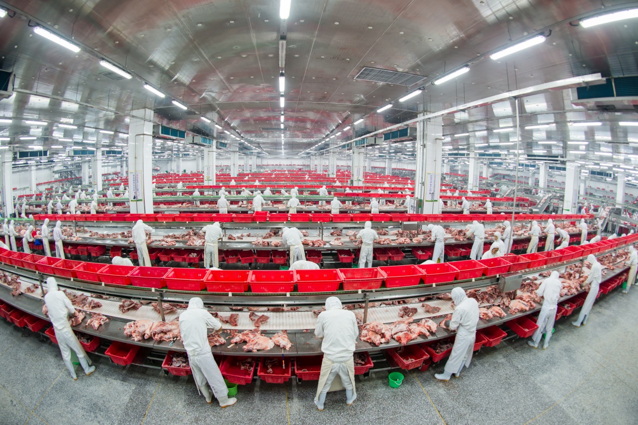生鮮品事業(yè)部是集團發(fā)展的重要產(chǎn)業(yè)支柱,集生產(chǎn)銷售、服務(wù)于一體,依托集團公司綜合優(yōu)勢,服務(wù)于我國肉制品行業(yè)。目前生鮮品事業(yè)部發(fā)展迅猛,擁有4個駐外分廠,23個銷售區(qū)域,近200個銷售市場和14000多家冷鮮肉專賣店。已形成年屠宰加工生豬2000萬頭,肉雞2億只的生產(chǎn)能力,其中屠宰車間有90余條流水線,肉雞車間有40余條流水線,是中國最大的生豬屠宰加工生產(chǎn)企業(yè)。